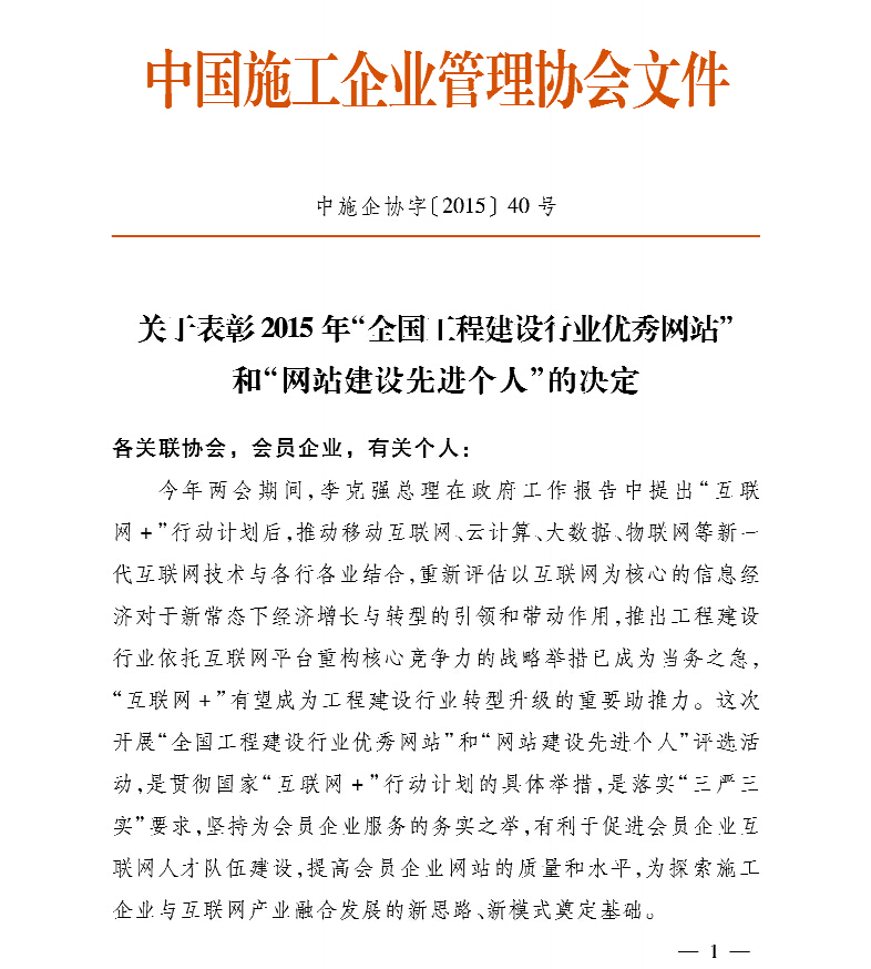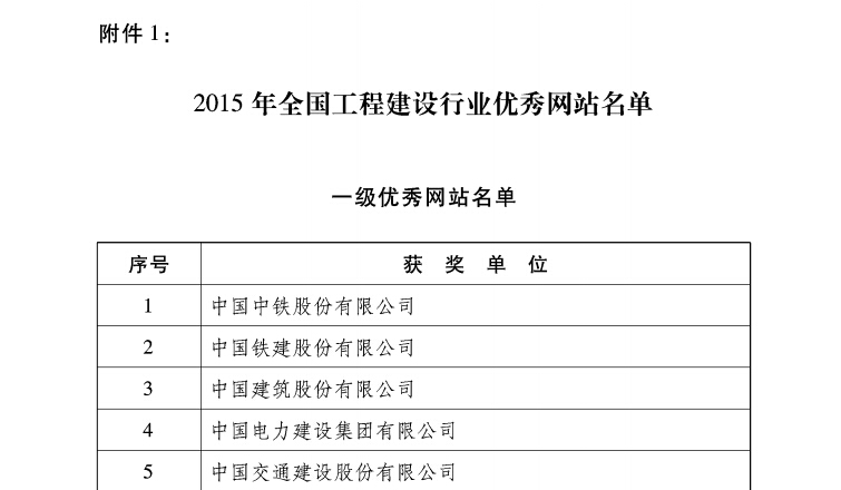 热烈庆祝集团门户网站荣获全国工程建设一级优秀网站