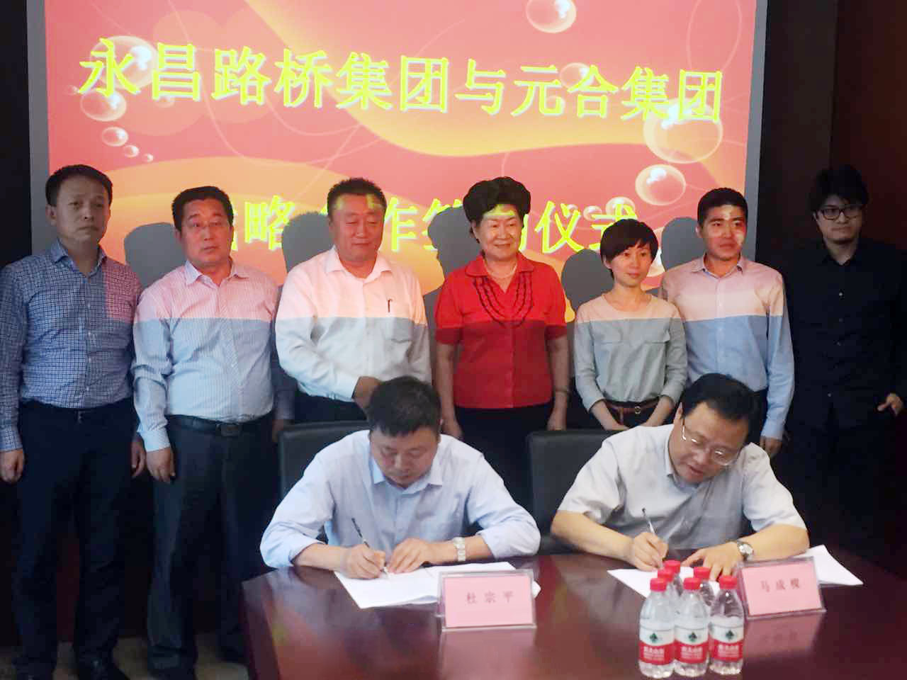 5月16日,永昌路桥集团与上海元合集团在上海成功签署战略合作协议。我集团董事长杜宗平先生与元合集团董事长马成樑先生代表双方企业进行签约,双方通过战略合作将致力于在中国新型农村城镇化建设与旅游产业开发方面实现互利共赢,共同发展。上海元合集团是致力于新型城镇化开发建设与运营管理的服务集团,由城镇开发、基金管理、科技互联、健康养老、商业管理等专业公司组成;以“集成创新”的商业模式,积极参与中国新型城镇化建设,在新型城镇化开发建设与运营管理的产业集成服务方面具有突出的优势。