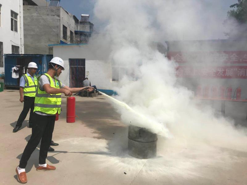 本次消防安全应急演练共分为理论培训和实践操作两个部分,理论培训是由总承包项目部安全负责人黄常恩主讲,重点培训了消防器材的种类、灭火类型、灭火方法、注意事项及灭火器的使用方法;然后大家分组进行了实践操作,亲身体验了灭火器的使用过程。