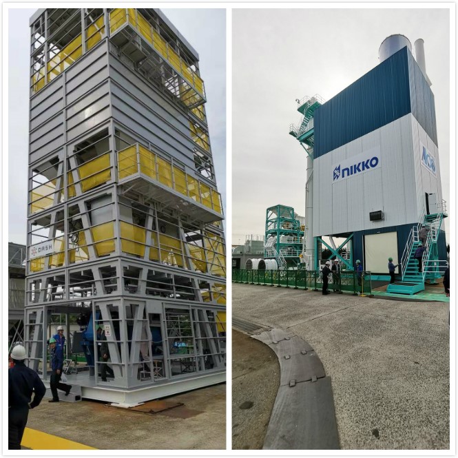 图为日工株式会社生产的混凝土拌和站(左)以及沥青拌和站(右)