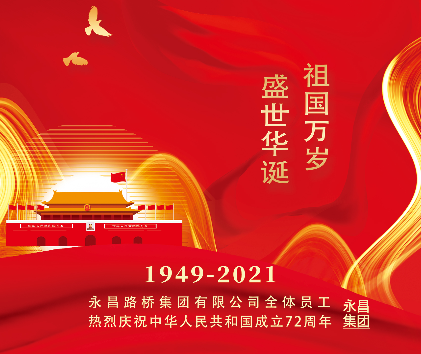 在此,永昌路桥集团有限公司全体员工向祖国致敬,为祖国母亲献上我们诚挚的祝福!