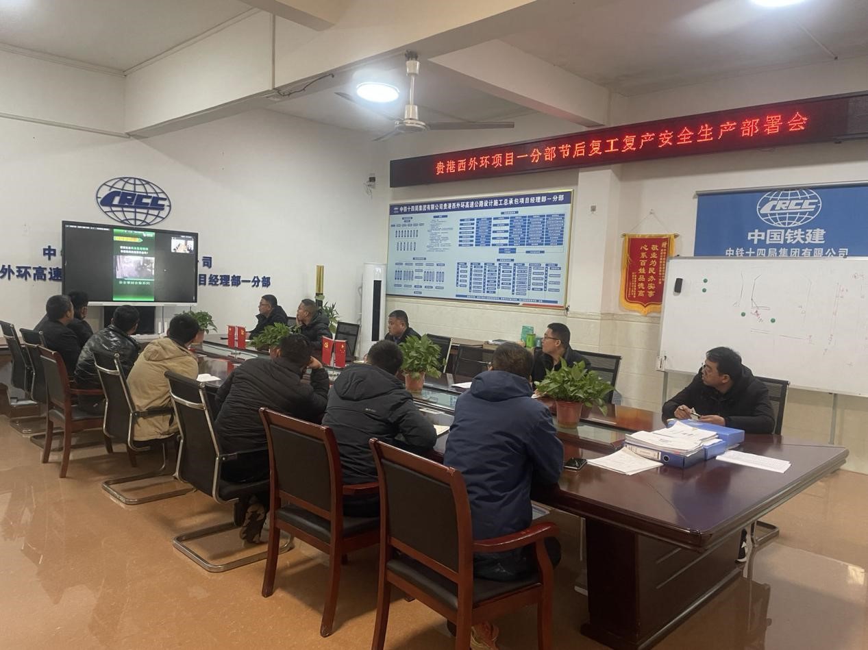 2月26日下午,贵港西外环项目在项目经理姚辉皇主持下召开春节后复工复产安全生产部署会,项目部各科室负责人以及进场施工队伍负责人参加此次会议。