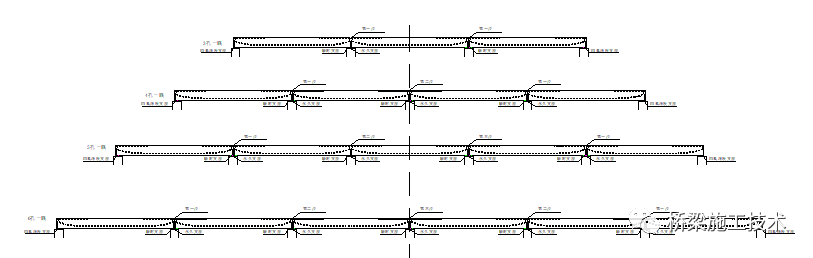 ● 主导梁前移:确认摇滚架上与导梁无挂联,同时启动前后摇滚和导梁上两纵移台车,使导梁前移(当辅支腿到达前桥台时停止),纵移台车后移(两纵移台车移至尾部停止)。