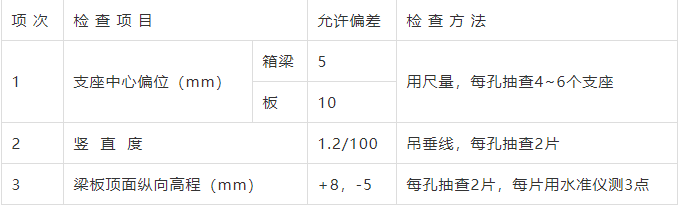 ③ 落梁:架梁前即放出每个支承垫石的横向、纵向中心线及梁端横向、纵向中心线,安好临时支座,当梁运至横向、纵向中心线与支承垫石横向、纵向中心线重合后落梁。