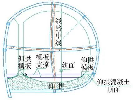 在拱部衬砌施工完成后,拆除出入场线剩余初期支护进行仰拱衬砌施工。仰拱每次施工长度以30m左右为宜。
