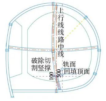 (1)严格控制支撑拆除长度,仰拱防水施工完成后立即对所切割竖撑隔榀回撑,支撑拆除、切割前后必须进行监测,当监测数据超警戒值或突变时,对全部切割的竖撑进行回撑,同时确保回撑质量,使回撑后的竖撑真正受力。