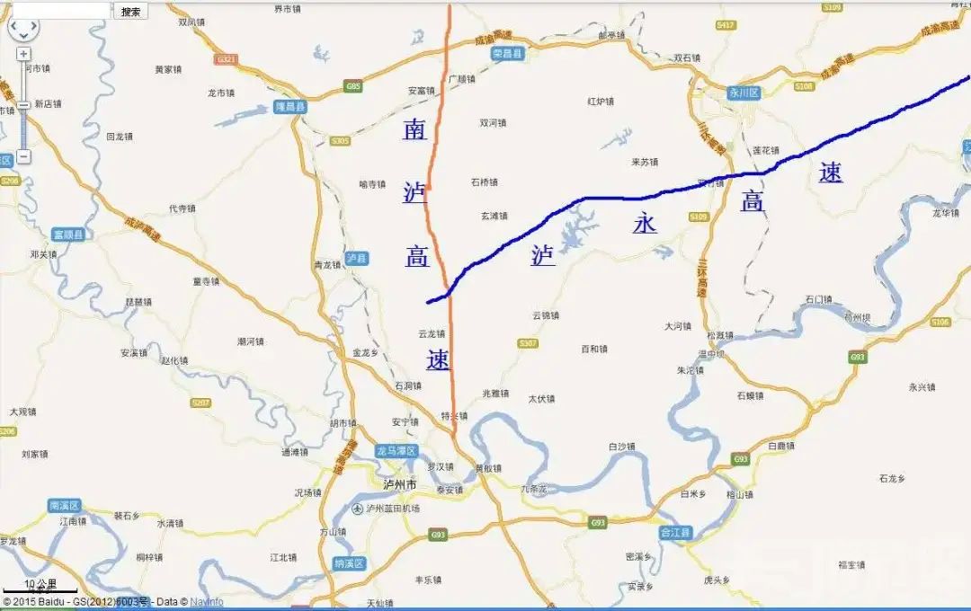 泸州至永川高速公路起于泸州市泸县牛滩镇附近,接隆纳高速,经得胜镇、奇峰镇、玄滩镇,止于毗卢镇下林村川渝省界处,与重庆段相接,全长42.307公里;全线采用双向四车道高速公路标准建设,设计速度100公里/小时,项目估算总投资约51亿元,建设工期3年。