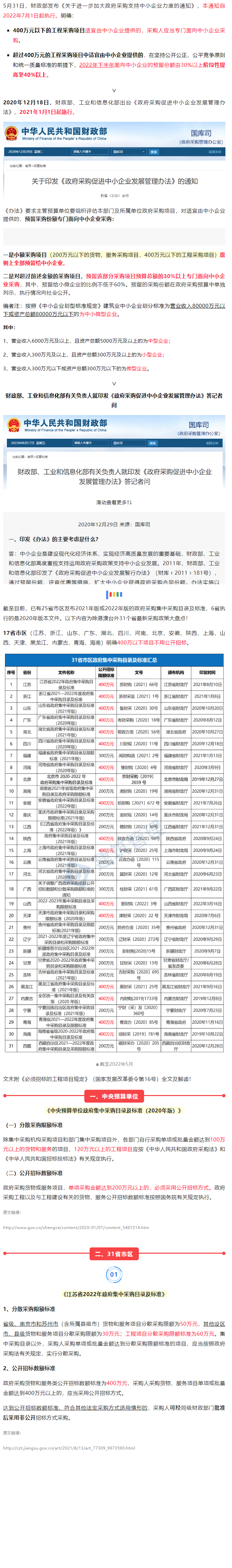 400万以下项目不用公开招标!财政部:原则上全部留给中小企业!超过400万的留40%以上 -云顶集团官方网站入口