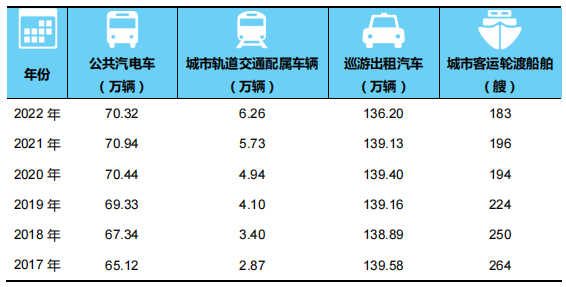 表5 2017-2022年年末全国城市客运装备拥有量