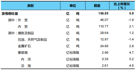 3.营业性货物运输量为铁路、公路、水路、民航完成数,不包括管道数据。