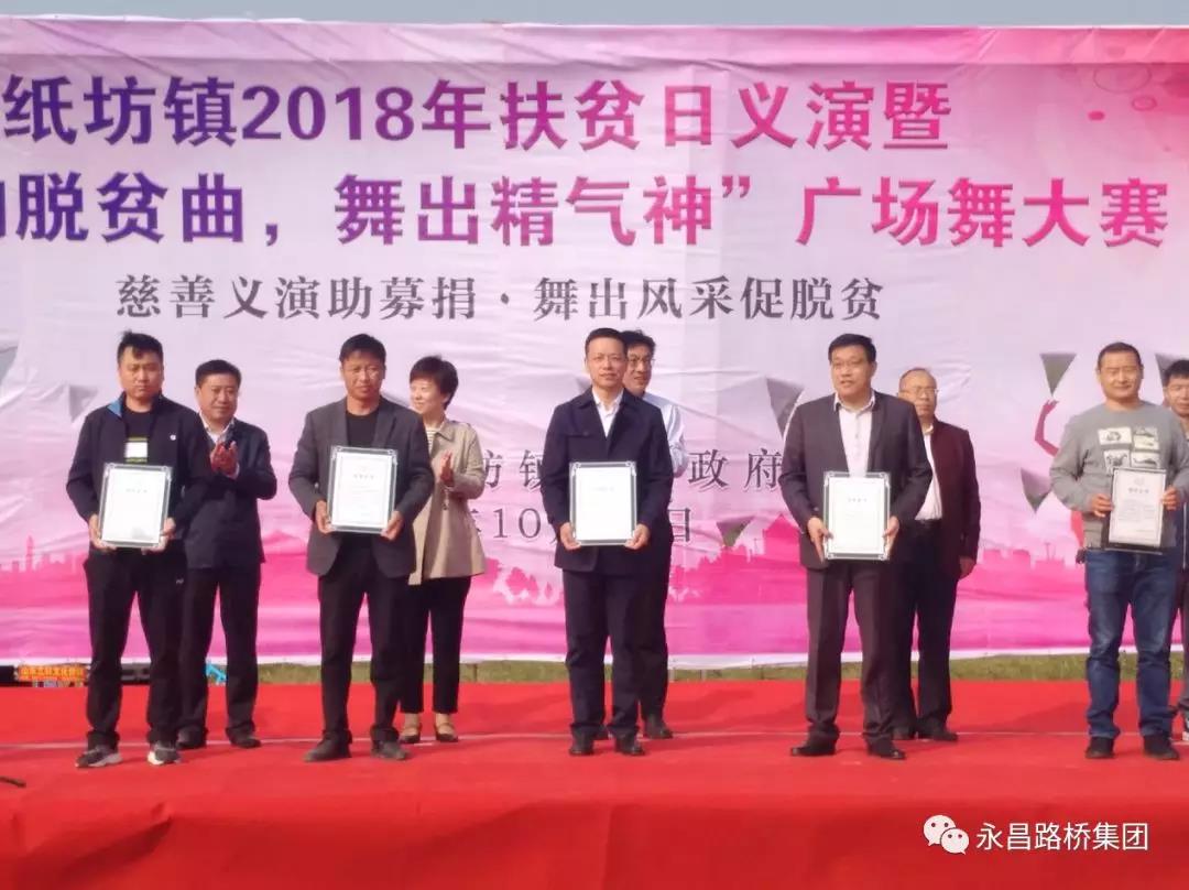 我司作为纸坊镇龙头企业,在董事长杜宗平的带领下,为家乡作了巨大的贡献,不仅捐赠学校、建起了道路桥梁,还年年为纸坊镇的孤寡老人进行经济扶贫。今年又给纸坊镇隋庄村捐赠1万的扶贫专项资金。永昌集团的种种义举得到了老百姓和政府的交口称赞。