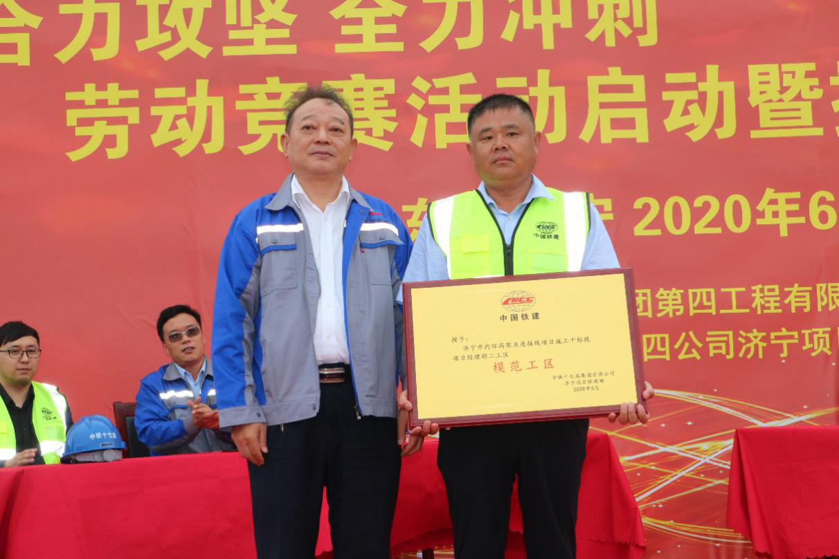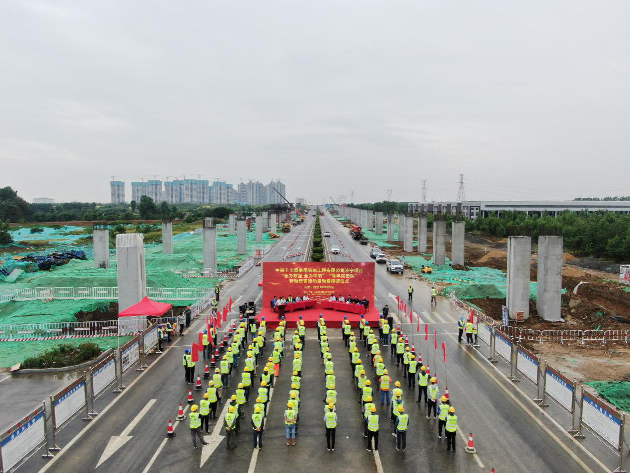 6月12日上午,济宁市内环高架及连接线项目施工十标段开展了劳动竞赛暨“青年突击队”“工人先锋号”授旗仪式,吹响了加快推进施工建设的冲锋号,紧紧围绕“实干达标”工作主线,向年底通车目标发起全面总攻。
