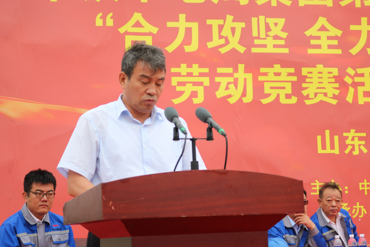 公司副总裁张国静发表讲话,他分析了项目目前的形势和管理方法,强调要加强领导,扎实推进,认真做好劳动竞赛组织工作;公正实施,赏罚分明,充分激发职工创新创益潜能;通力合作,突出重点,注重发挥职工作用取得实效;“工人先锋号”,要勇担使命,创新创效;“青年突击队”,要立足岗位、身先士卒。希望项目全体干部职工振奋精神,开拓创新,以求真务实,超越自我的勇气,以扎实苦干,努力拼搏的精神,在各自的岗位上建功立业,确保项目各项施工任务顺利完成!