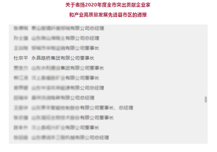 喜报丨杜宗平董事长被授予济宁市 “2020年度明星企业家”称号