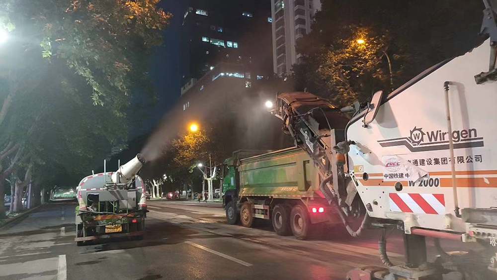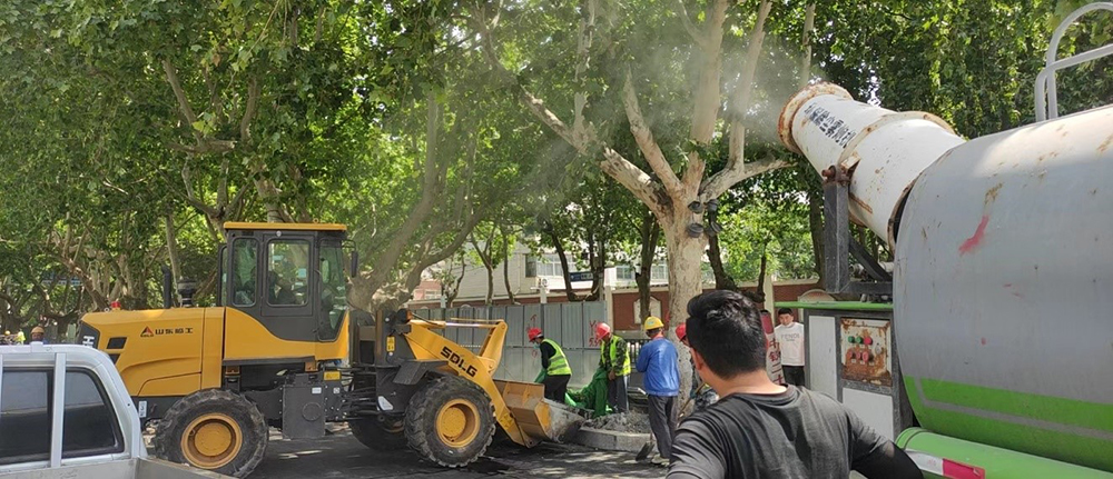 由于共青团路项目位于市区繁华地段,如何在保质量、保进度的同时,更好的展示企业安全、文明、绿色施工形象,实现绿色环保施工,也是项目履约的主要工作。对此,项目积极采取错峰施工、合理规划交通导行方案,加大对防尘降噪措施的投入。施工现场围挡喷淋系统24小时不间断降尘,清扫车、洒水车不定时进行路面清理洒水,安排专人疏导交通,尽可能减少对百姓生活出行影响,维护城区市容市貌。