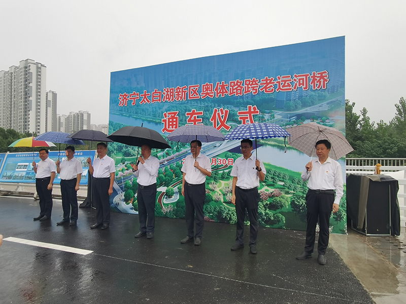 一河两岸新跨越,昂首阔步迈征程。8月30日,由市政工程公司参建的济宁太白湖新区奥体路跨老运河桥项目正式建成通车。