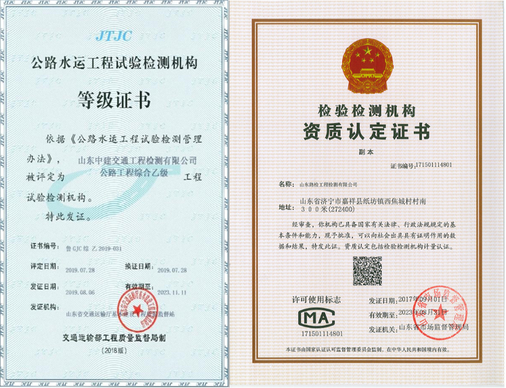 检测机构资质证书