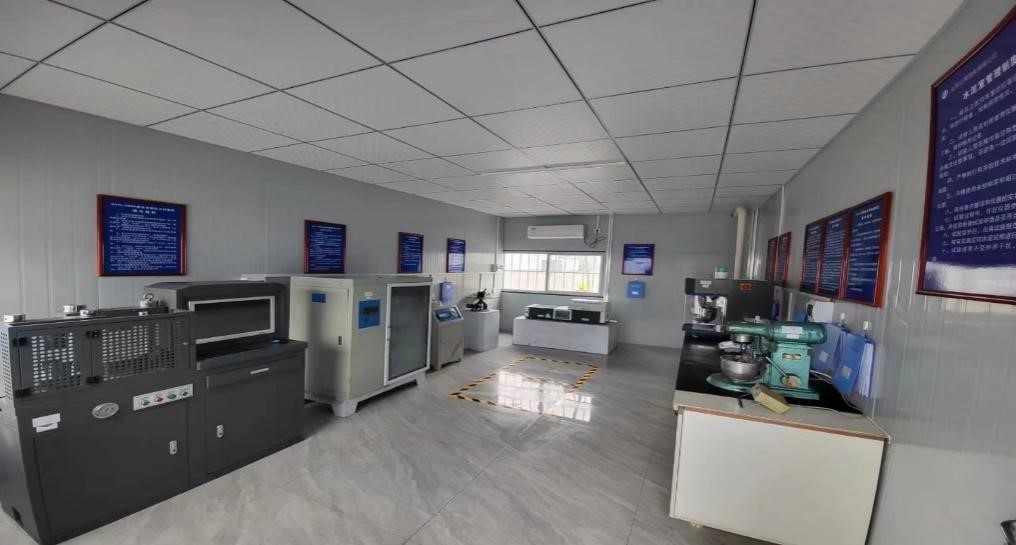 本试验室由山东路检工程检测有限公司组建,并依据《山东省工地试验室标准化建设与管理指南》及工程需要组建了留样室、化学室、集料室、土工室、水泥室、水泥混凝土室、力学室、标准养护室、现场检测仪器室共9个分室。各分室按照分工负责各自检测范围内相关工作,试验室建筑总面积244m²,现有试验检测设备64台(套),现有专业试验人员10人,其中,工程师职称4人;助理工程师职称4人;试验检测师8人;助理试验检测师2人。试验室检测人员持证率100%