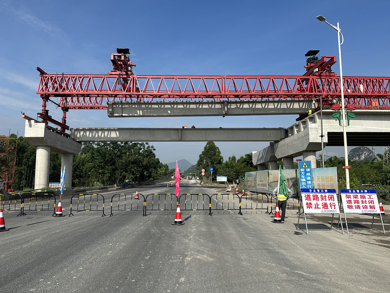 据悉,g358高架桥全长697米,预制箱梁共计188片,此次架设的箱梁为左幅13a-4,梁长33米,重达120吨。为保证安全顺利跨国道架梁,贵港西外环项目部组织召开箱梁架设暨交通疏导部署会并进行图纸会审,对箱梁的长度、平面位置、高程、桥位处的曲线半径、纵坡等进行复核,对架桥机的拼装,调试到过孔,支座安装到喂梁、吊梁、架梁严格把控,最终完成了本次箱梁架设任务。