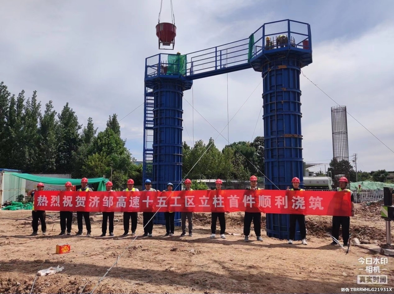 7月15日下午,济邹高速十五标段项目首根桥梁墩柱成功浇筑,标志着项目下部结构施工正式拉开序幕。