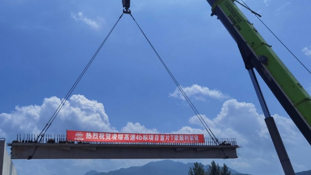 项目快讯|凌绥高速4b标 首片预制粱顺利架设