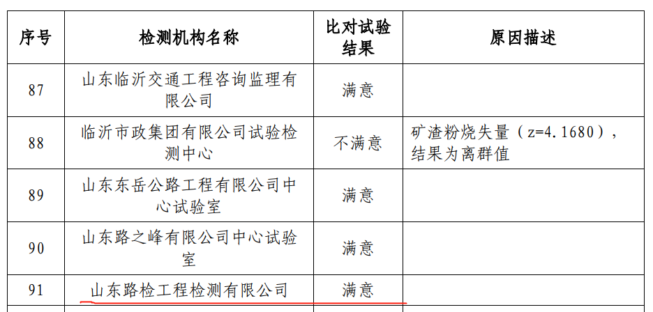 近日,在山东省交通建设市场监管公共服务平台公示的“2023年度山东省公路水运工程试验检测机构及在建高速公路项目工地试验室比对试验结果的公示”中,山东路检工程检测有限公司被评为“满意”。